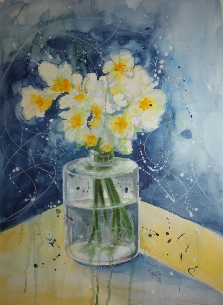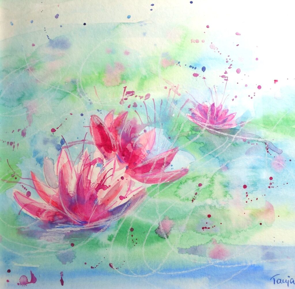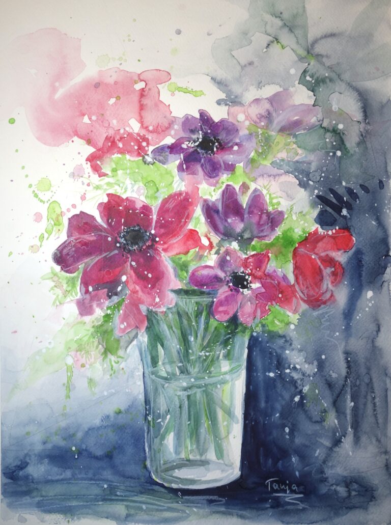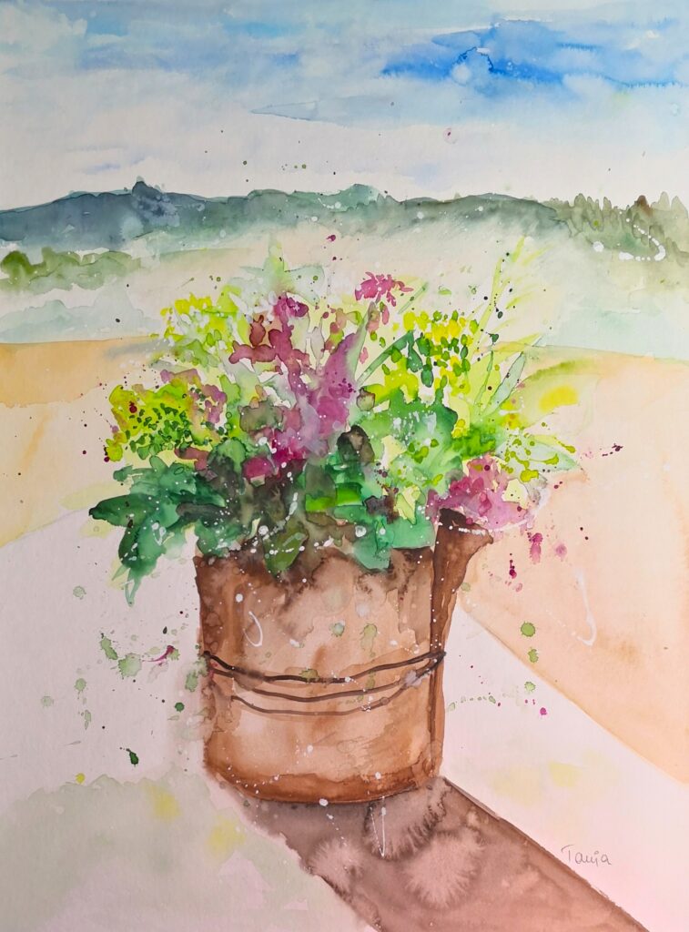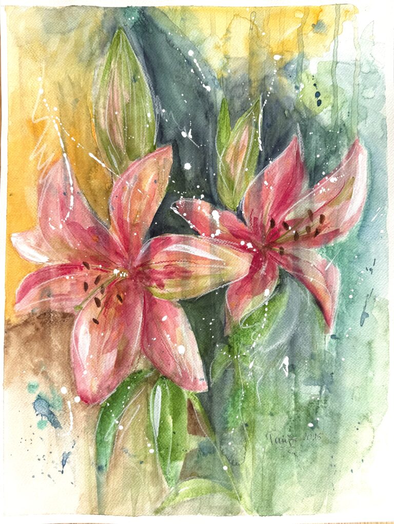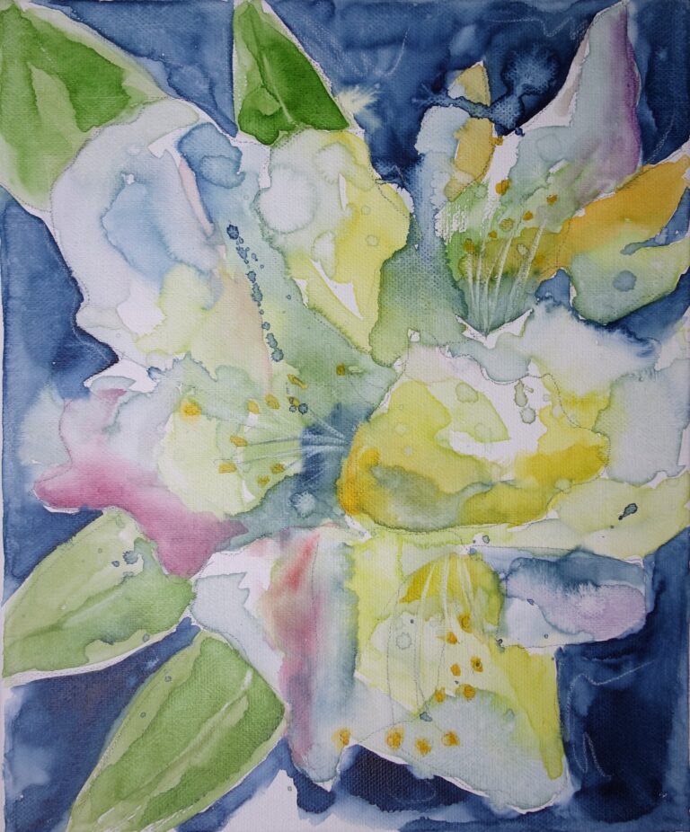 In meinen Aquarellen verbinde ich fließende Farbverläufe mit präzisen Details