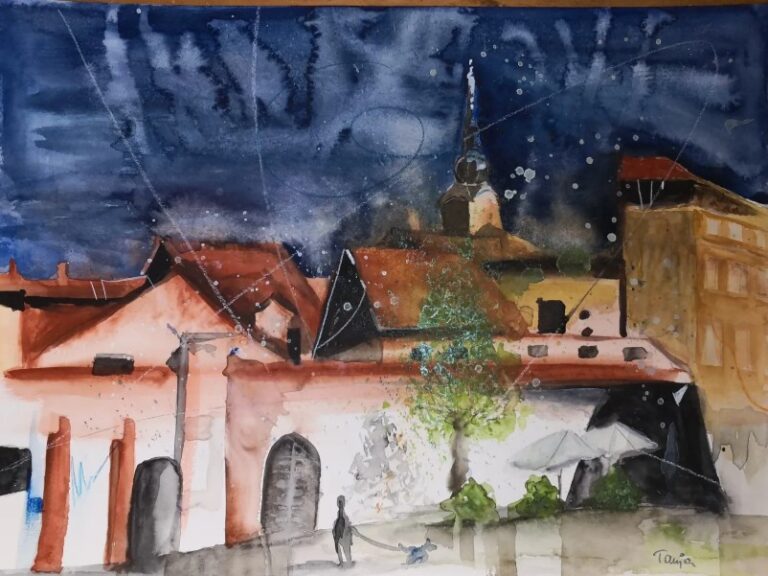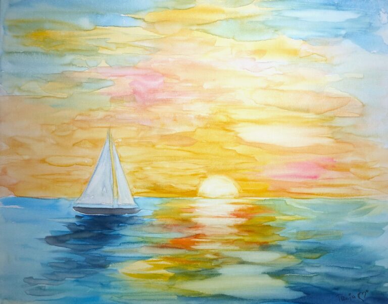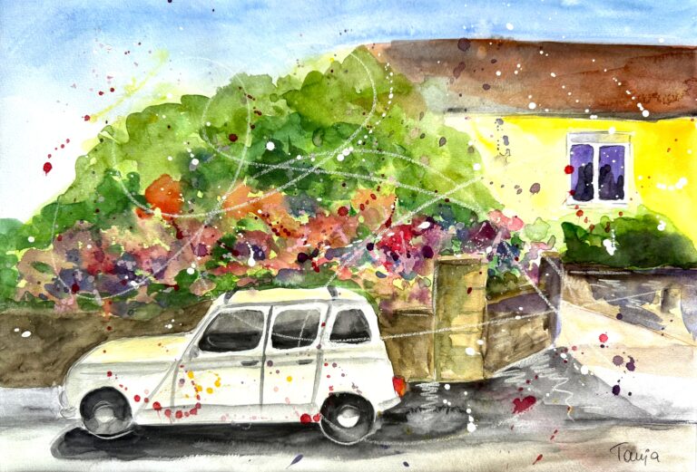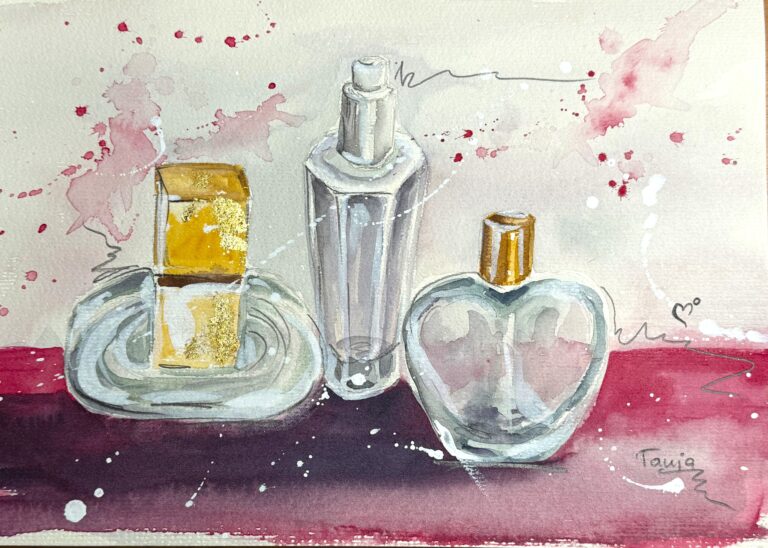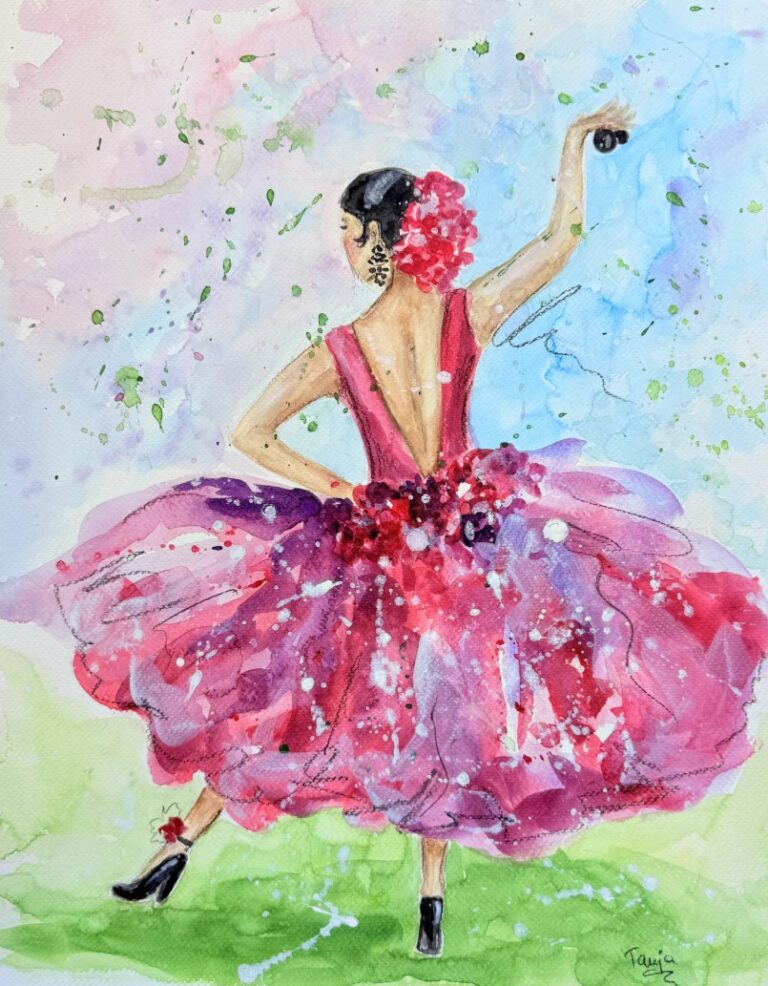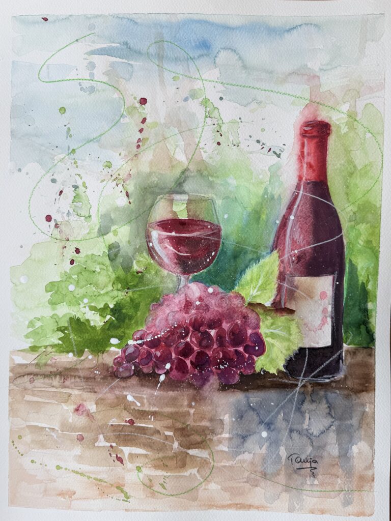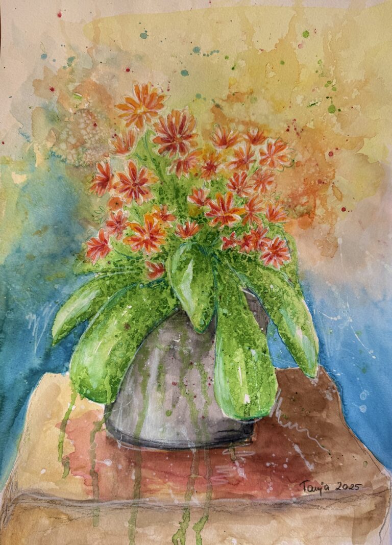In meinen Aquarellen verbinde ich fließende Farbverläufe mit präzisen Details